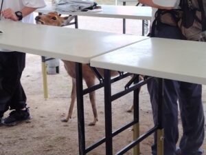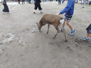 そんなイベントの間もテントの下にやってきて広げた地図を食おうとしたり、鹿たちはマイペースに生きていました。