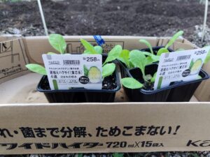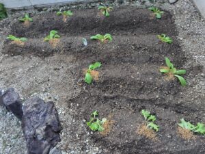 そこから1週間後に白菜10株とサニーレタス4株を植えました。