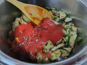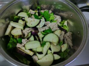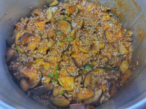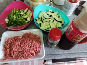 また、今年は母からピーマンと茄子を具材にしたミートソースの作り方も教わりました。