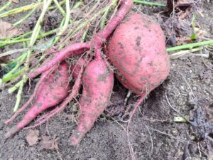 10月中旬、薩摩芋掘りを決行。が、今年は何か微妙というか、変な感じに。玉葱のスペースに植えたので2か所あったのですが、そのどちらも端は全然で、中央部分だけやたらと成長しているという結果に。