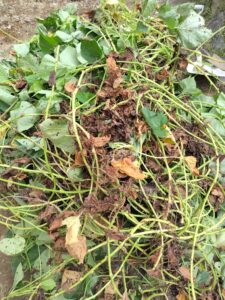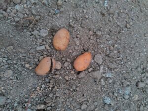 またその時に、収穫し切れていなかったじゃがいもがいくつか出てきたので、これも少し耕した範囲に植え直すことに。秋じゃがは難しいからやらないことにしましたが、買ってない分が勝手に育つ分には美味しいので。