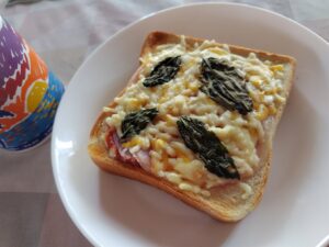 収穫の終わったトマトの株を引っこ抜いた際、生育促進用のバジルも回収して葉っぱの部分だけを冷蔵庫に。適宜取り出してパスタに混ぜたり、ピザトーストに乗っけて焼くことで香りUPに活用。ピザトーストは良いチーズや生ハムを買ってみたところ、ガチで美味しいのが出来たので多少贅沢な朝御飯にしたい時はピッタリかもしれません。