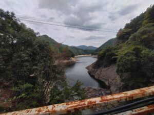 ともかく、ぐったりするような運転の果てに、川沿いの169号線にある上北山村の道の駅に到着。朝7時くらいからヤマザキが開くし、2階にはレストランもある。道路のそばに大きくて綺麗な川が流れているのもあって、ここは昔から記憶があった場所ですが、今回はでようやく位置関係もはっきりした。