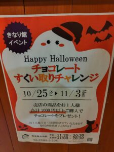 また、ハロウィン期間なので土産屋さんでお菓子のすくい取りをやっていました。8個くらい取れた人もいるらしいけど自分は5個。ちょっと少なかったかも。