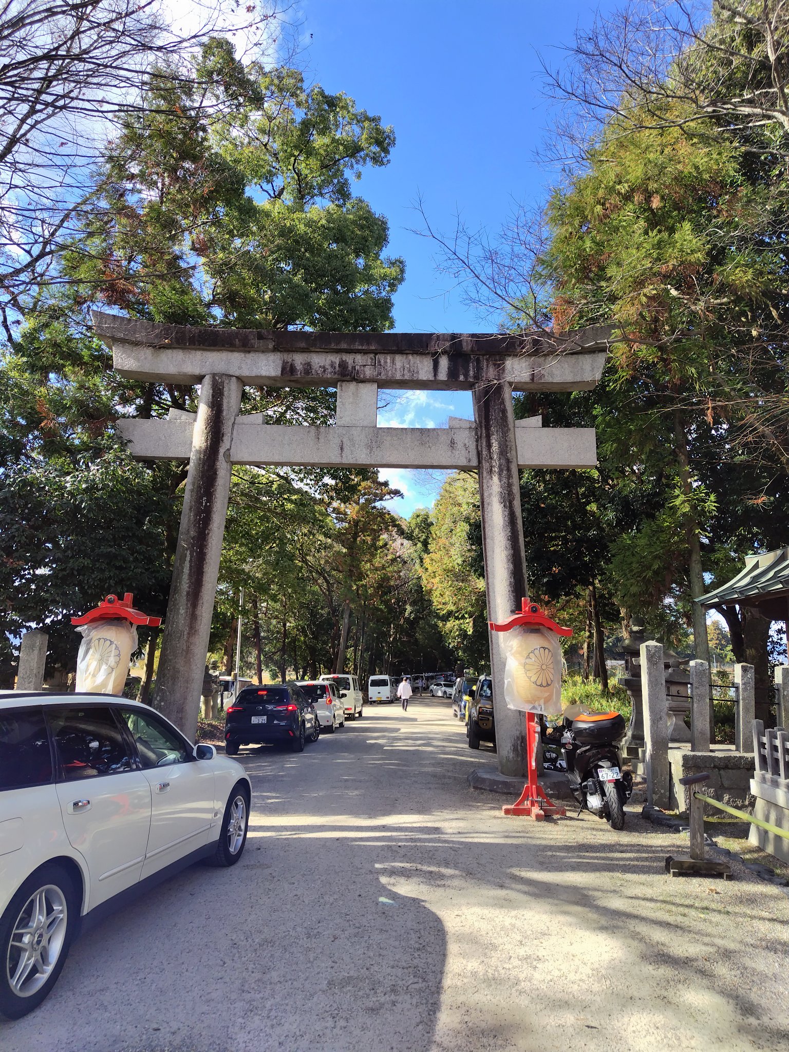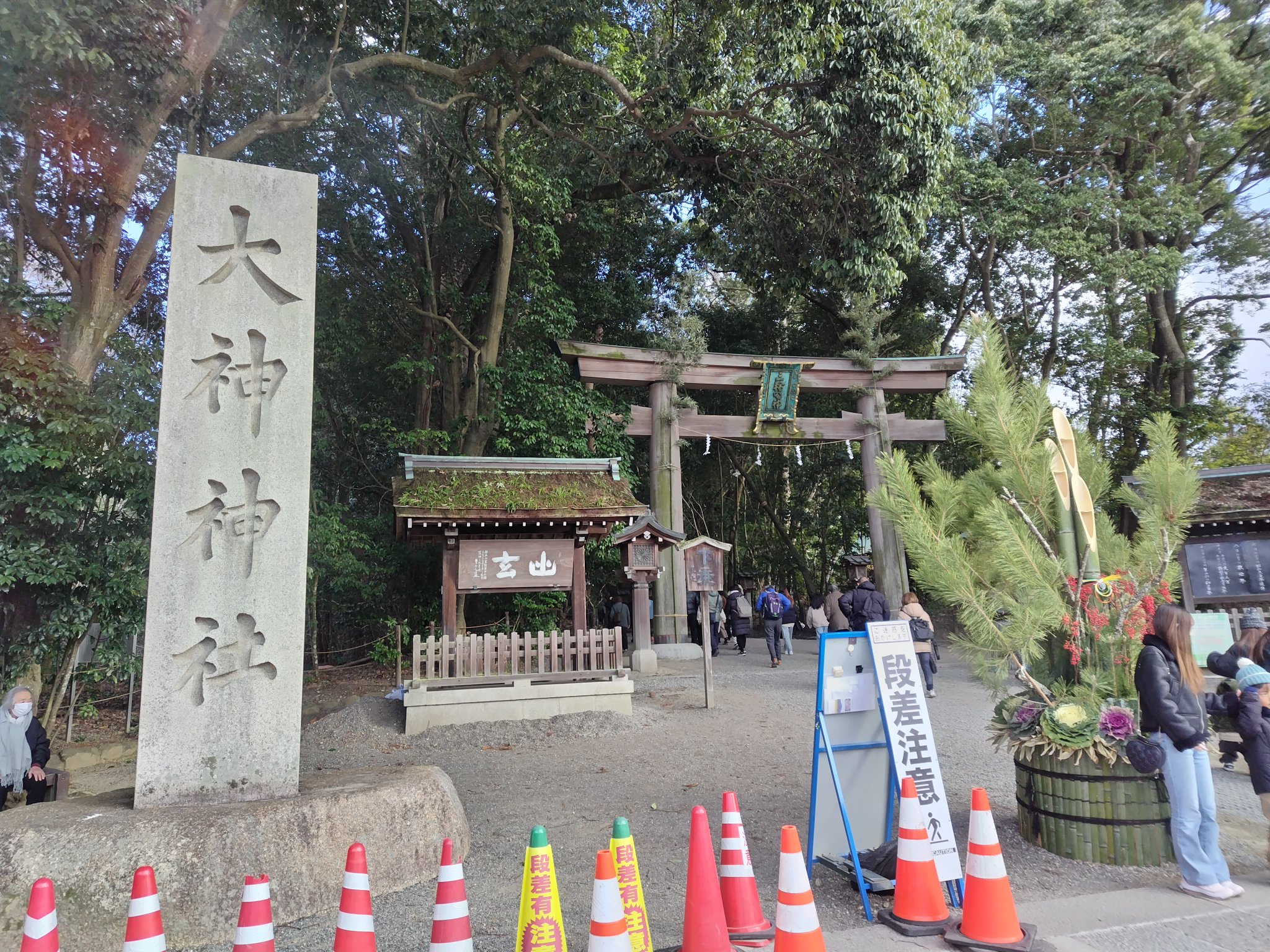 まぁそれにしても、車の多いこと多いこと。入口から途中までずっと車が左右に駐車してるし、それ等の車が出ていくのを待ってる169号線や51号線から来た車も鳥居の外に長蛇の列。こんなに車で大量の参拝客が来ることなんて想定されていない規模の神社なので、駐車場も完全にキャパオーバーでした。これはもう間違いなく電車で来て良かったなと思いました。曽爾高原の山頂もそうなんですが、目的地まで車一辺倒というのも時と場合によっちゃあ最適解とはならないんですねぇ。
