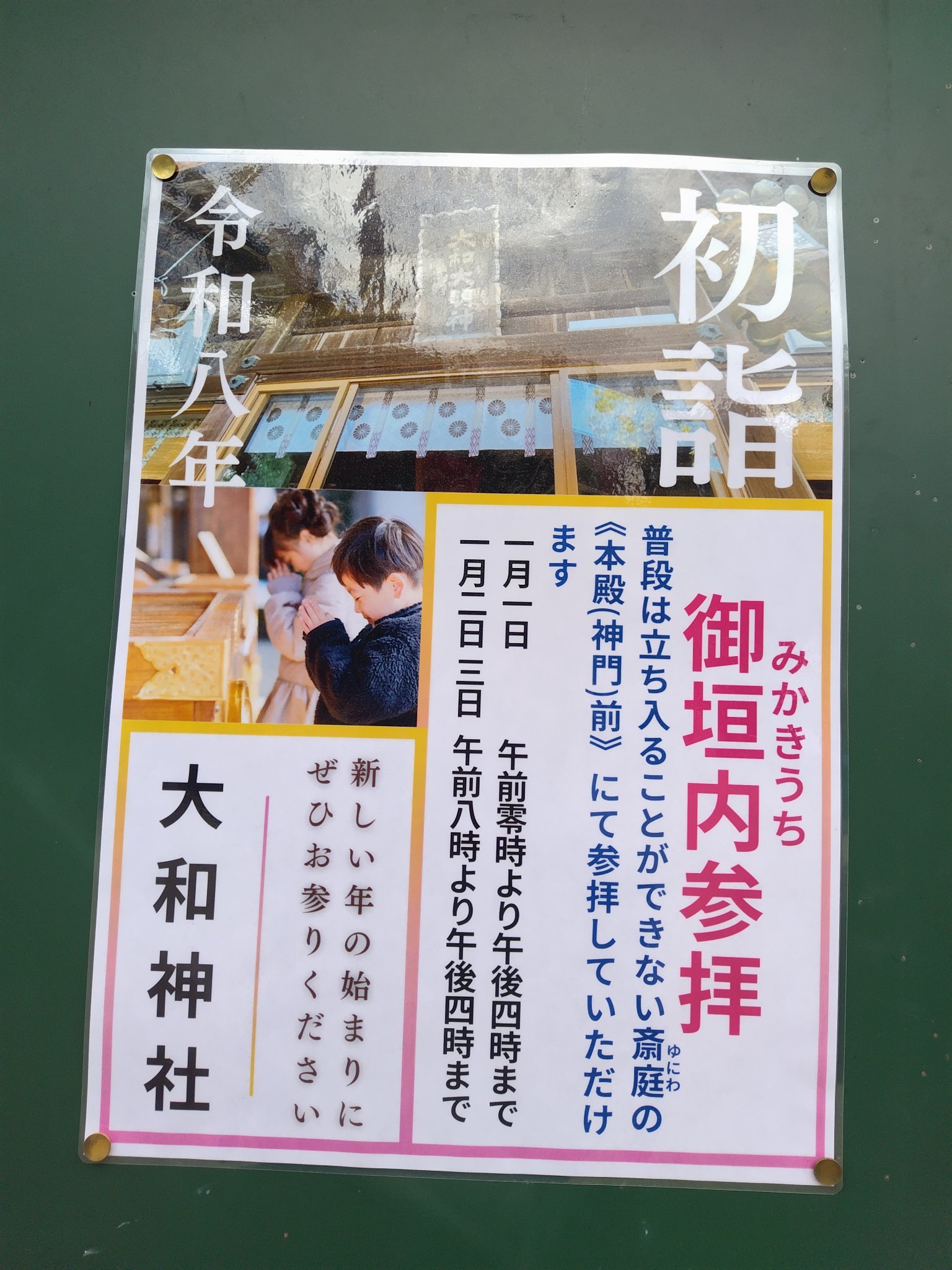2日、3日は 8時~16時#大和神社 #御垣内参拝 #初詣 pic.twitter.com/LVDeMIvFsP— 大和神社 (@ohyamato_nara) December 23, 2025