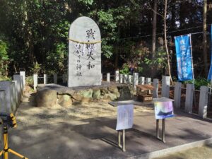 大和神社の一の鳥居から正面へそのまま歩いて行けば、国道169号線に。これを渡って山の方へ向かって歩いて行くと・・・