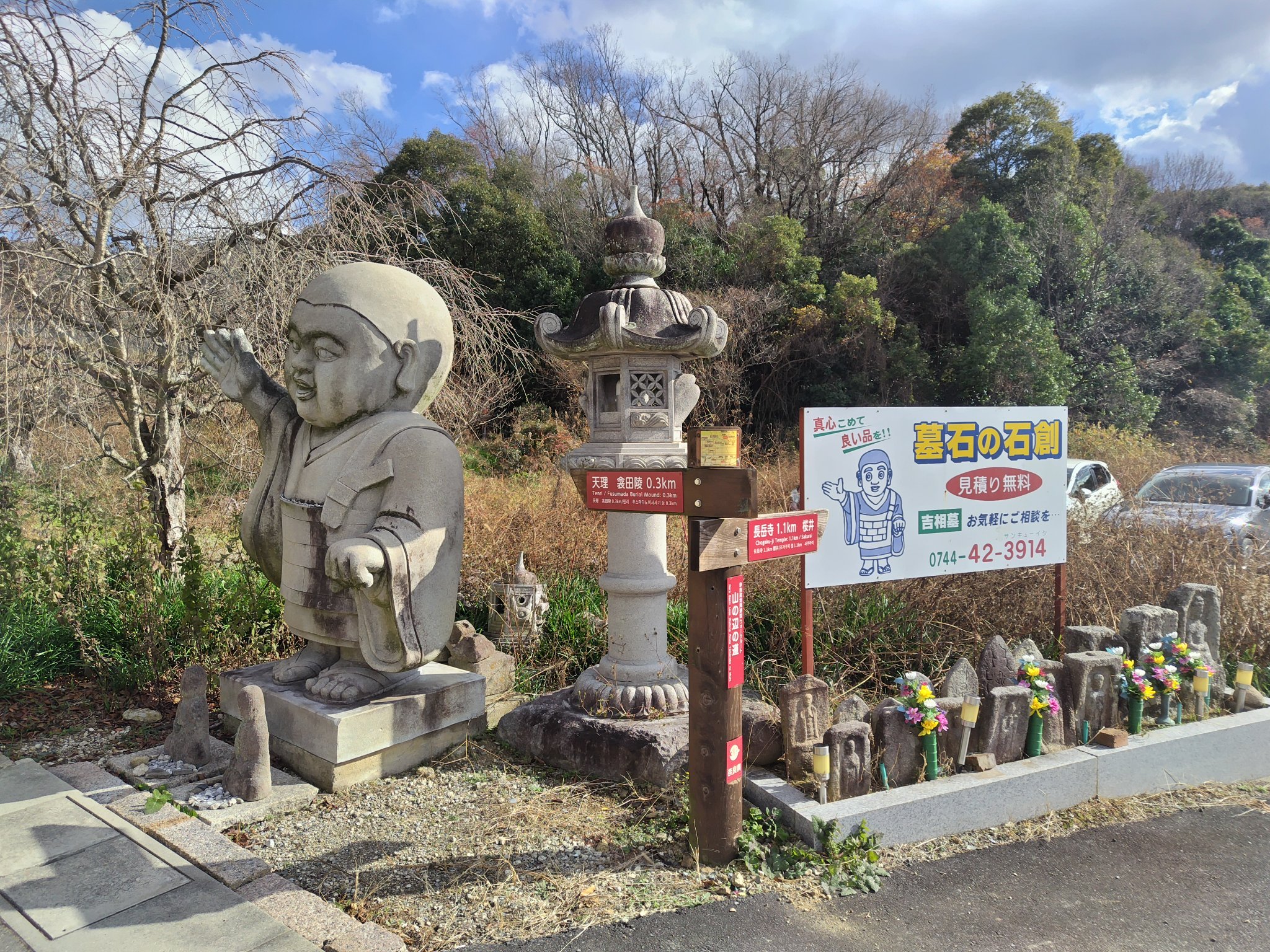 謎の石像だの、お墓だの、畑や住宅地の中だの、とにかくただ歩いているだけで、景色が目まぐるしく変わるので、本当に歩くだけで楽しい、そんな道になっていました。