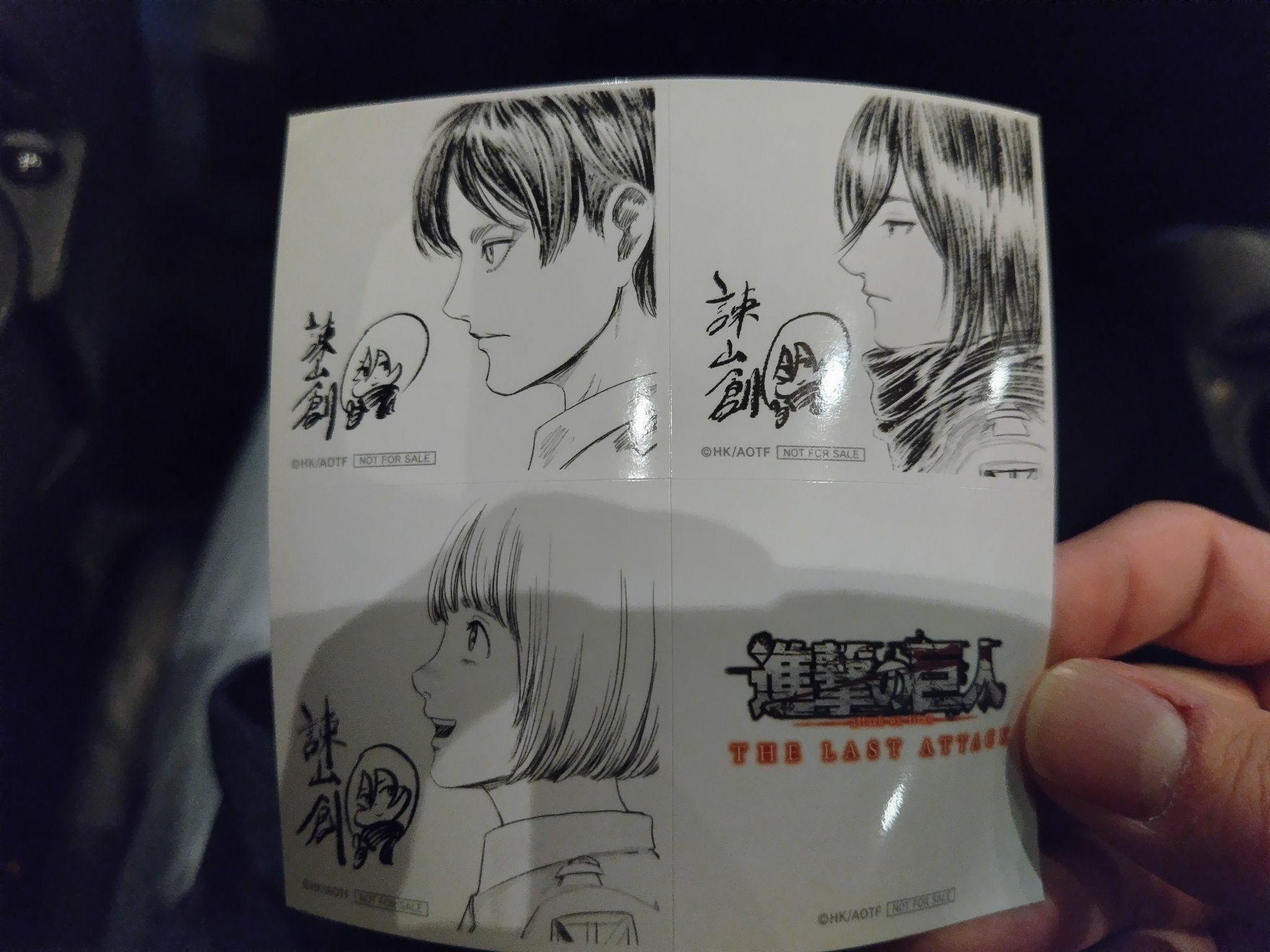 …そしてハンジさんの最期で泣いて、エレンの最期で泣いて、兵長の涙に泣いて、マフラー巻きに来た鳥で泣きました。MX4Dでより映像と一体化しているから、通常版見た時よりも情緒を揺さぶられるシーンが多かったと思う。明らかにあの時より、すすり泣いてる声も多かったし。