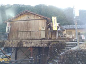この道の駅の道路の向かいには十津川村役場があり、その間の道路から伸びる橋で川を渡ったさきにあるのが「滝の湯」。湯泉地温泉の日帰り温泉の一つです。食堂ではダムカレーがあるのですが、今回は時間外。またの機会にリベンジかな。